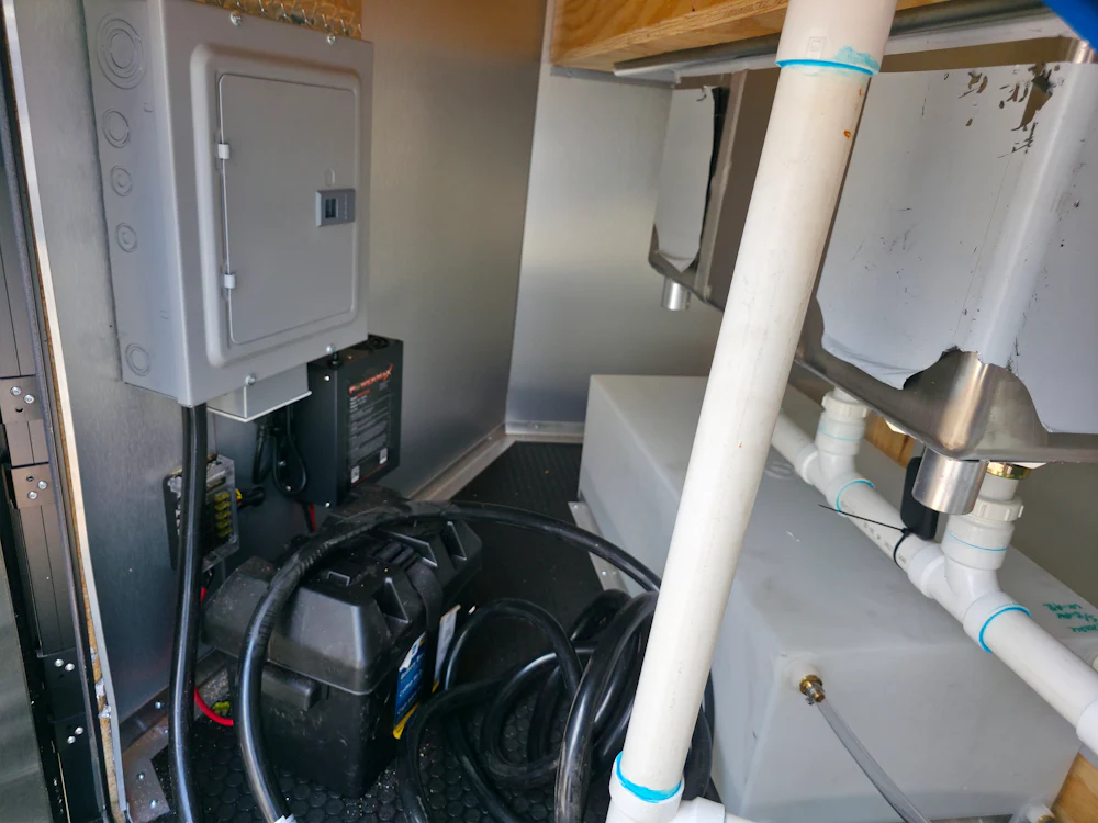 - 30-gallon fresh water tank and 50-gallon waste water tank