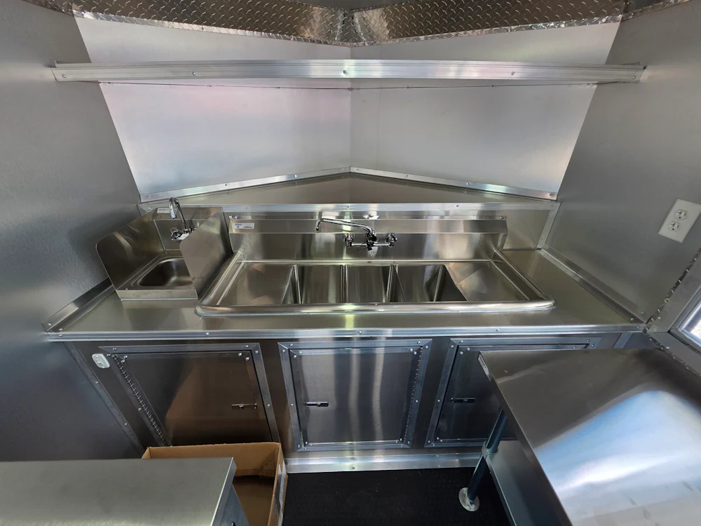 - Includes three-compartment sink and hand wash station