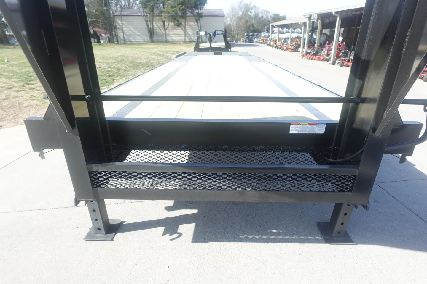 The 8.5-foot by 30-foot gooseneck deckover trailer is engineered for heavy-duty performance, featuring rugged King Kong loading ramps and a self-cleaning dovetail for efficient loading and unloading. With two greaseable 10,000lb axles and a robust I-beam frame, it’s built to handle the toughest jobs with ease. A convenient chain basket at the front provides organized storage, making it the perfect choice for demanding hauling tasks.